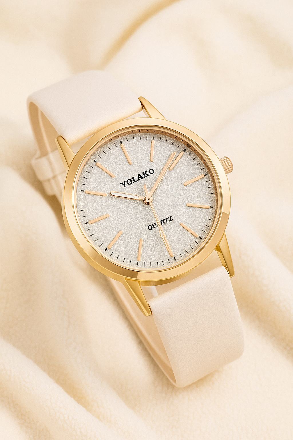 Elegantní doplněk, který podtrhne jakýkoliv outfit. Jemné bílé provedení s čistým ciferníkem dodává hodinkám sofistikovaný a ženský vzhled. -
